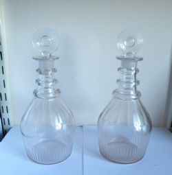 A RARE 1908 GLASS TYRE SHAPE DECANTER ENGRAVED "WHEN TYRED, SCOTCH"