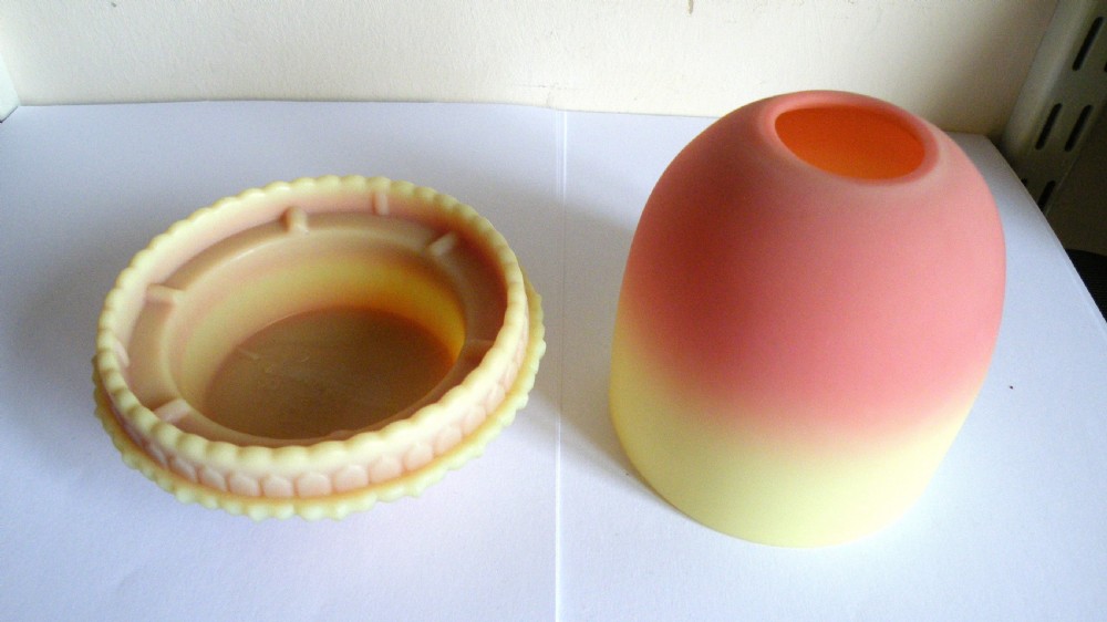 A RARE THOMAS WEBB BURMESE GLASS NIGHTLIGHT OF FAIRY SIZE WITH A BURMESE CANDLE CUP MARKED CLARKES HEIGHT 12 cm RARE TO FIND THE CLARKES CANDLE CUP LOVELY SHADED COLOUR SUPERB CONDITION FREE UK POST WE WILL SHIP WORLDWIDE