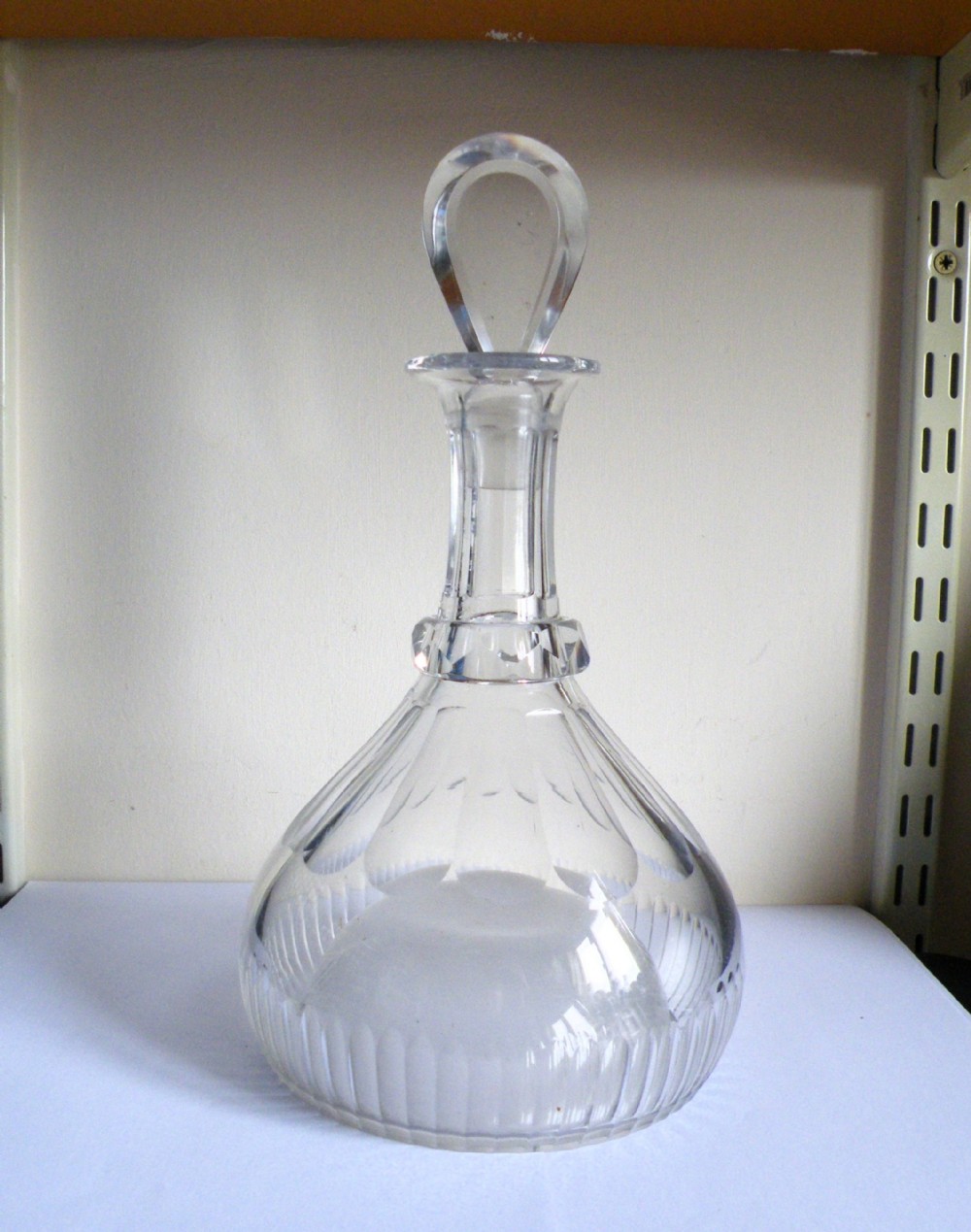 A RARE GEORGIAN SHIPS ICE CHAMPAGNE DECANTER HAVING A WIDE PETAL CUT BODY HIGH KICK IN BASE FOR THE ICE FACET CUT NECK RING LARGE LOZENGE STOPPER HEIGHT TO TOP OF STOPPER 30cm VERY HEAVY NO DAMAGE LOVELY CONDITION FREE UK POST WE WILL SHIP WORLDWIDE