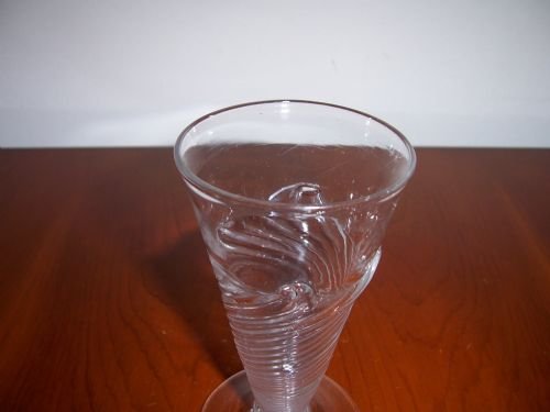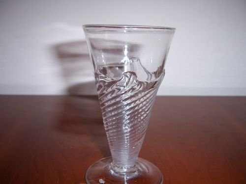 A RARE EARLY 18th CENTURY FLAMIFORM WRYTHEN DWARF ALE GLASS