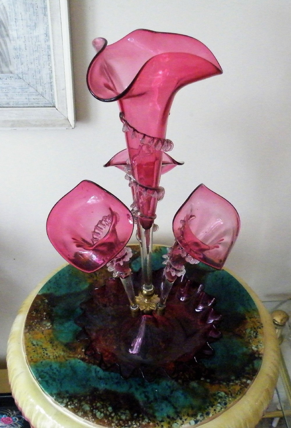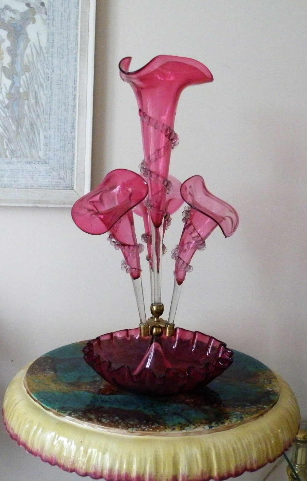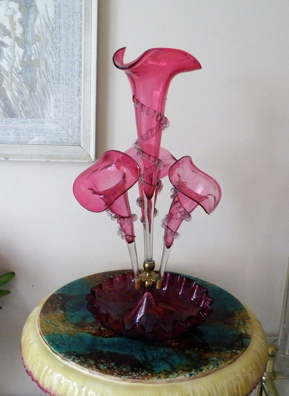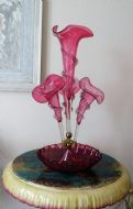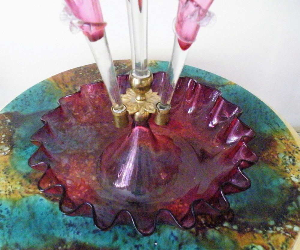 A GENUINE VICTORIAN CRANBERRY GLASS EPERGNE