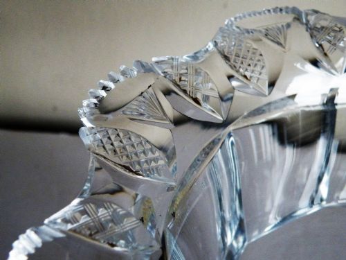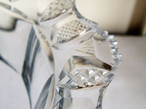 WITH A WONDERFUL SHAPED CUT GLASS RIM HAVING FAN AND DIAMOND CUTTING