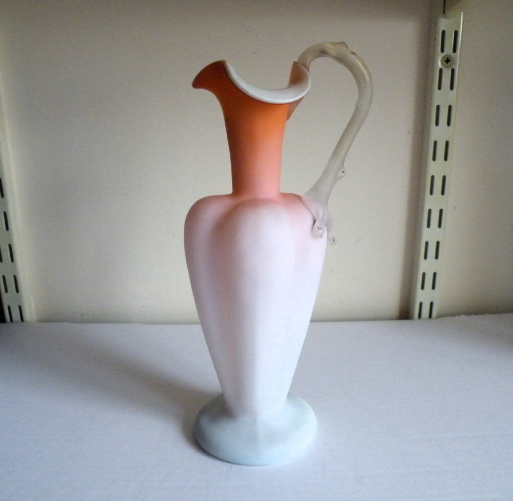 A VICTORIAN SATIN GLASS DECORATED EWER