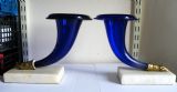 A FINE PAIR OF REGENCY BRISTOL BLUE GLASS CORNUCOPIA ON MARBLE BASES CIRCA 1820