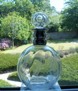 AN EDWARDIAN ENGRAVED GLASS AND SILVER DECANTER HAVING A LARGE GLOBULAR ENGRAVED BODY SILVER MOUNTS HALLMARK FAINT ORIGINAL SEMI ENGRAVED STOPPED HEIGHT TO TOP OF STOPPER 23cm BODY DIAMETER 14cm GOOD CONDITION READY TO USE FREE UK POST WE WILL SHIP WORLDWIDE