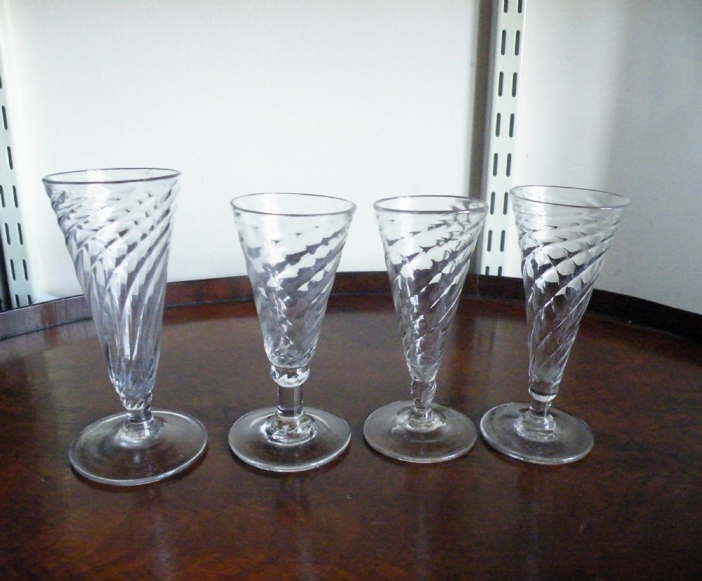 FOUR 18th CENTURY WRYTHEN DWARF ALE GLASSES