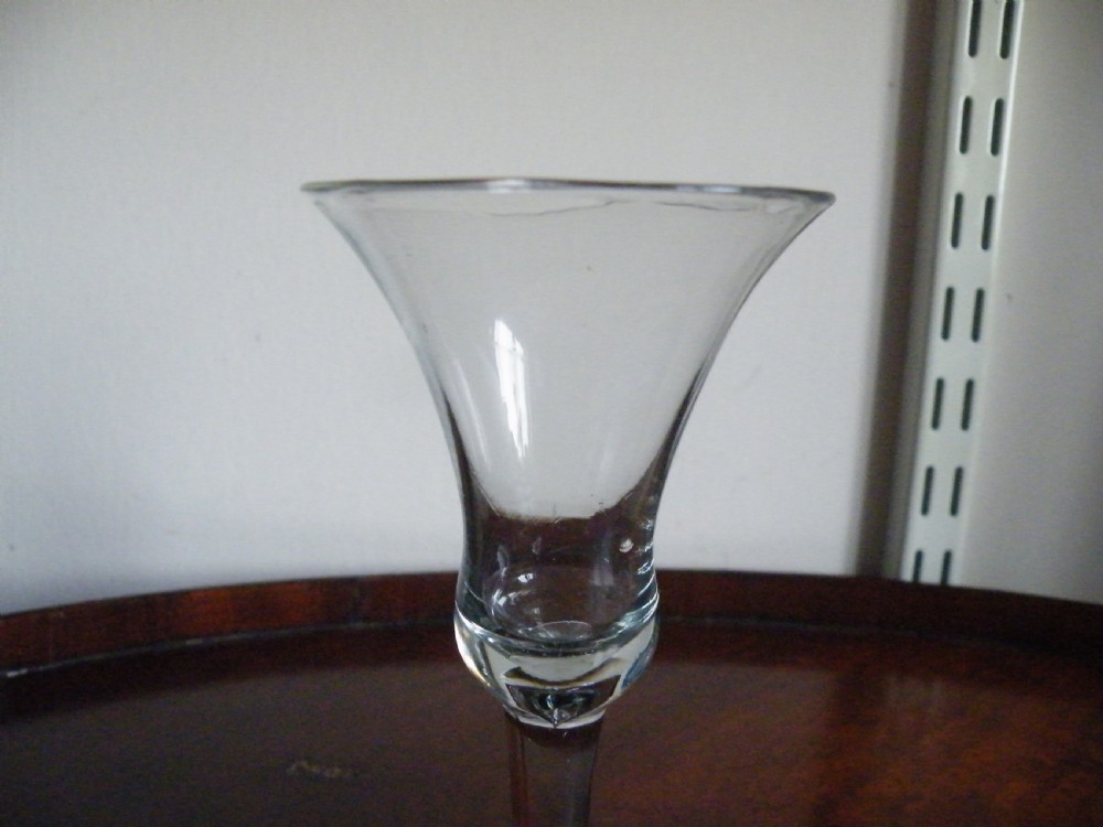 A MID 18th CENTURY PLAIN STEM WINE GLASS