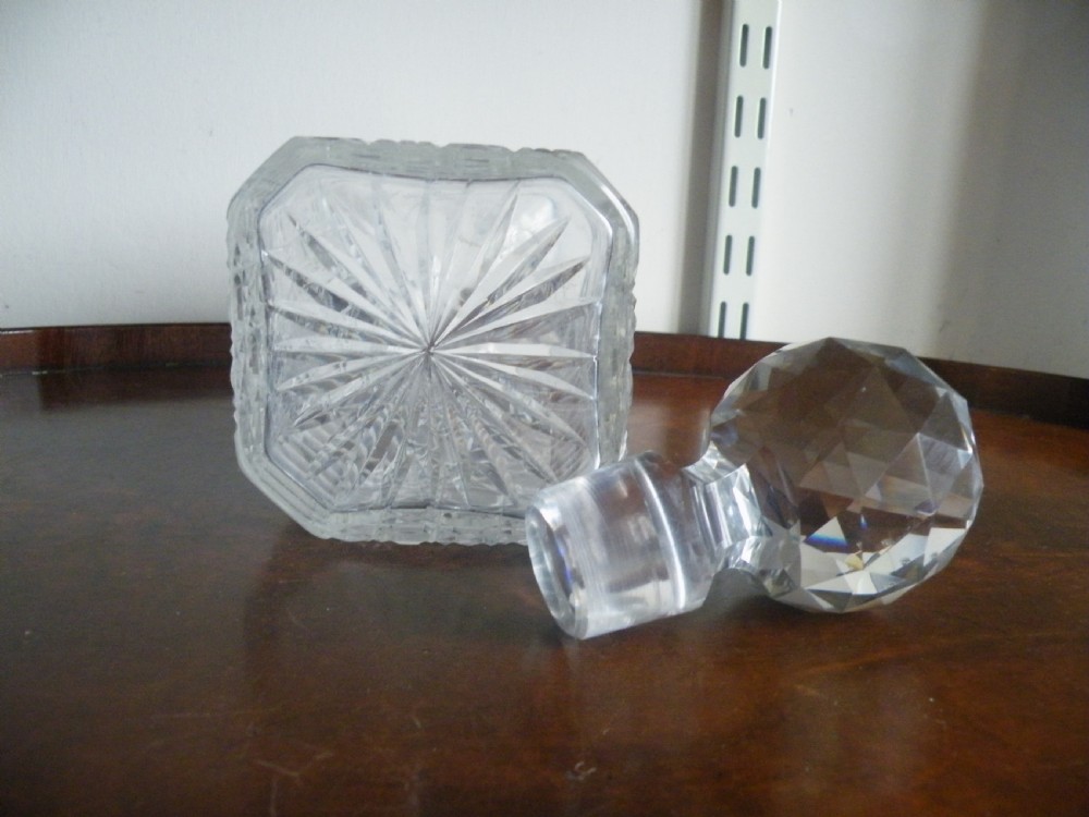 A 19th CENTURY HOB NAIL CUT SQUARE WHISKY DECANTER