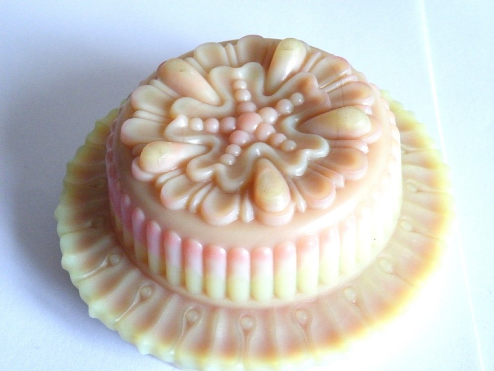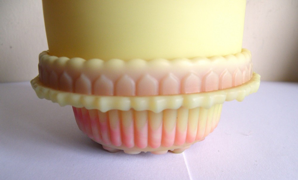A RARE THOMAS WEBB BURMESE GLASS NIGHTLIGHT OF FAIRY SIZE WITH A BURMESE CANDLE CUP MARKED CLARKES HEIGHT 12 cm RARE TO FIND THE CLARKES CANDLE CUP LOVELY SHADED COLOUR SUPERB CONDITION FREE UK POST WE WILL SHIP WORLDWIDE
