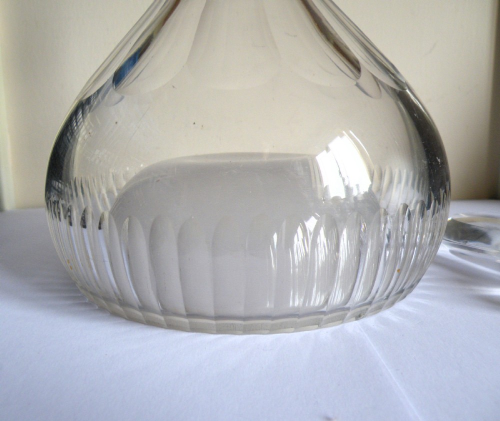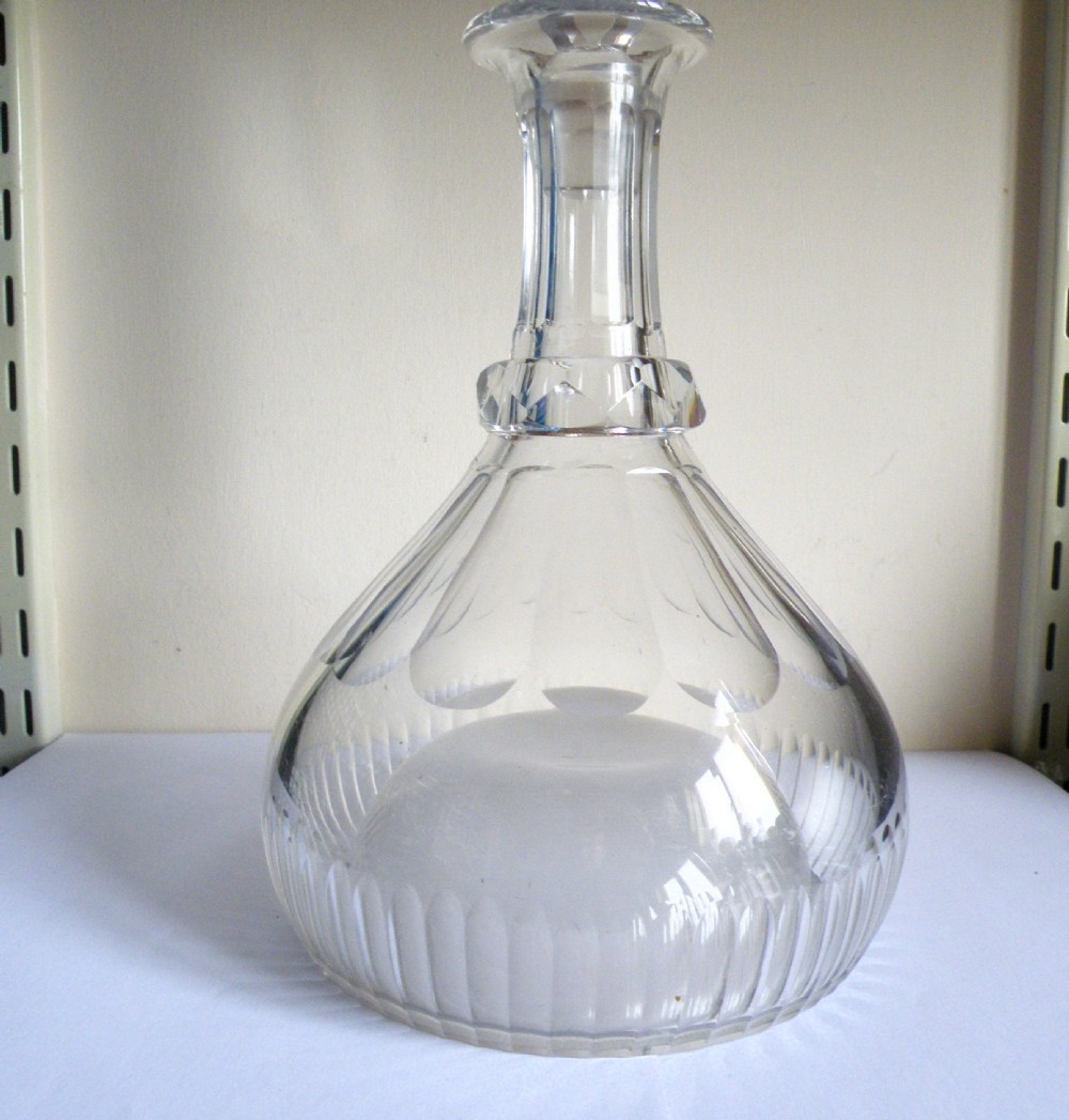 A RARE GEORGIAN SHIPS ICE CHAMPAGNE DECANTER HAVING A WIDE PETAL CUT BODY HIGH KICK IN BASE FOR THE ICE FACET CUT NECK RING LARGE LOZENGE STOPPER HEIGHT TO TOP OF STOPPER 30cm VERY HEAVY NO DAMAGE LOVELY CONDITION FREE UK POST WE WILL SHIP WORLDWIDE