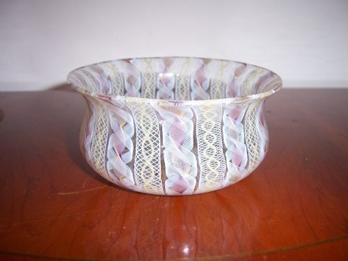 LATTICINO GLASS COMPOSED OF PINK,CITRON AND WHITE GLASS CANES