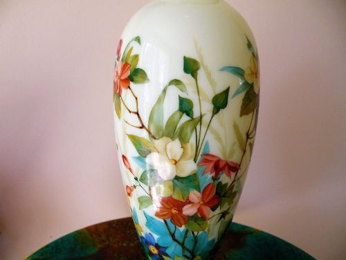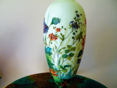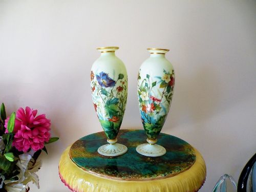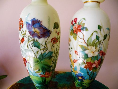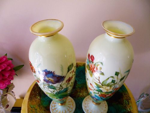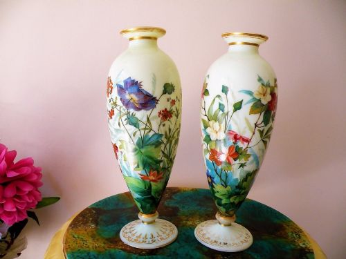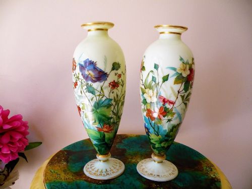 A Superb Pair Of Mid 19th Century Enamelled Opaline Glass Vases
