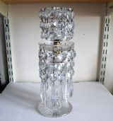 CUT GLASS DRIP PAN HUNG WITH TRIANGULAR CUT GLASS ICICLES AND BUTTONS