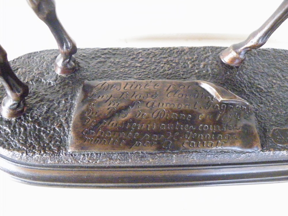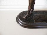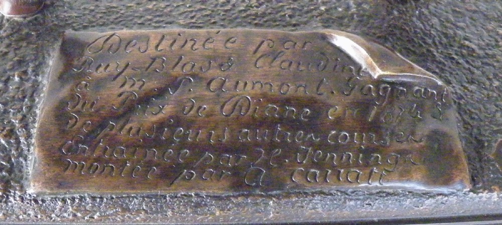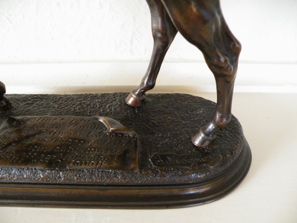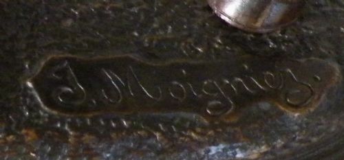 Over the course of his 40-year sculpting career Moigniez exhibited thirty works at the Salon between 1855–92. His first submission in a major art exhibition was his plaster, Pointer Stopping at a Pheasant, at the Exposition Universelle of 1855.[1][2] Moigniez was known for the fine detail and chiseling of his sculptures. His bronzes—usually cast using the lost wax method—were always immaculately chased and patinated, and were especially popular in England and Scotland.[2] More than half of his output during his lifetime was sold in the United Kingdom. By the end of the 19th century, his sculpture had become popular in the United States as well.[1]