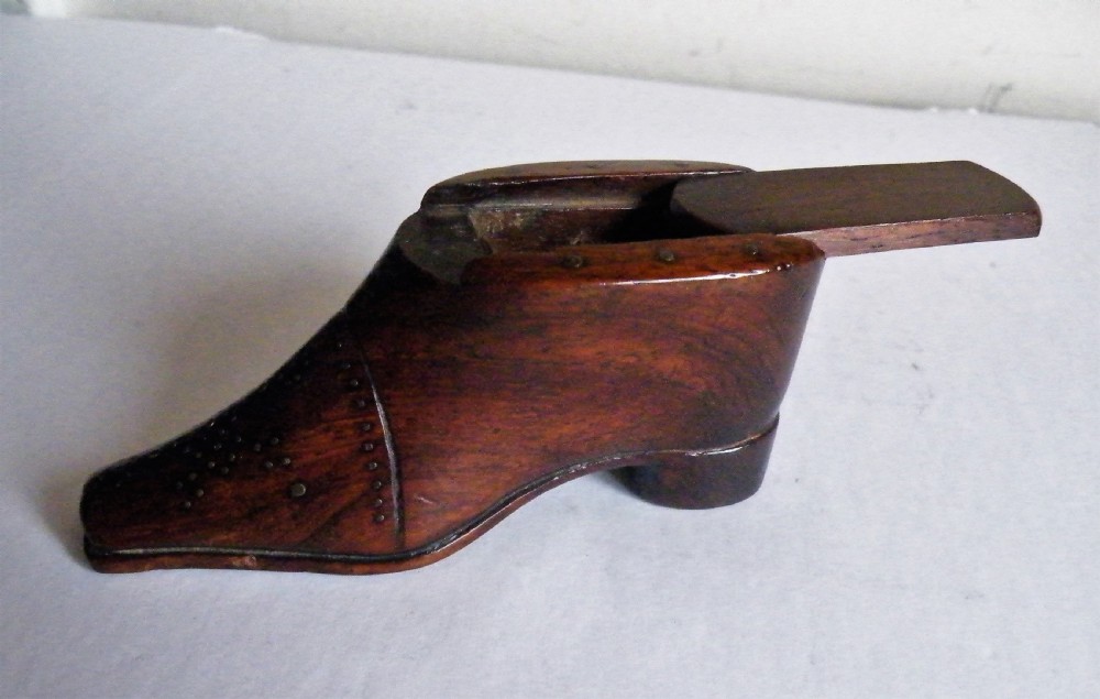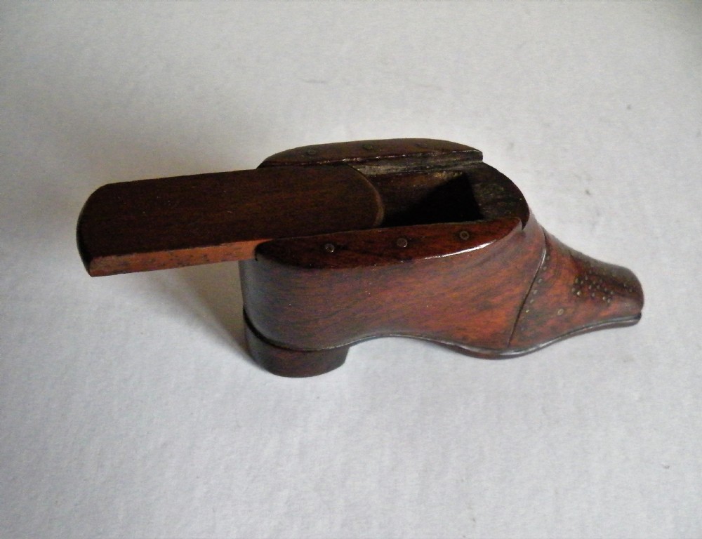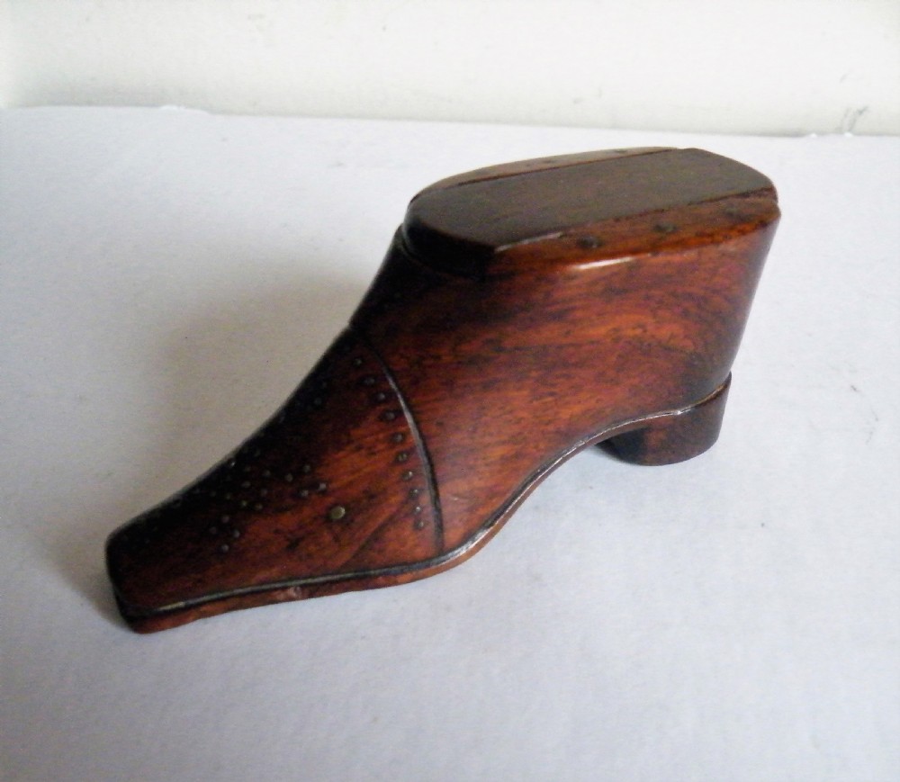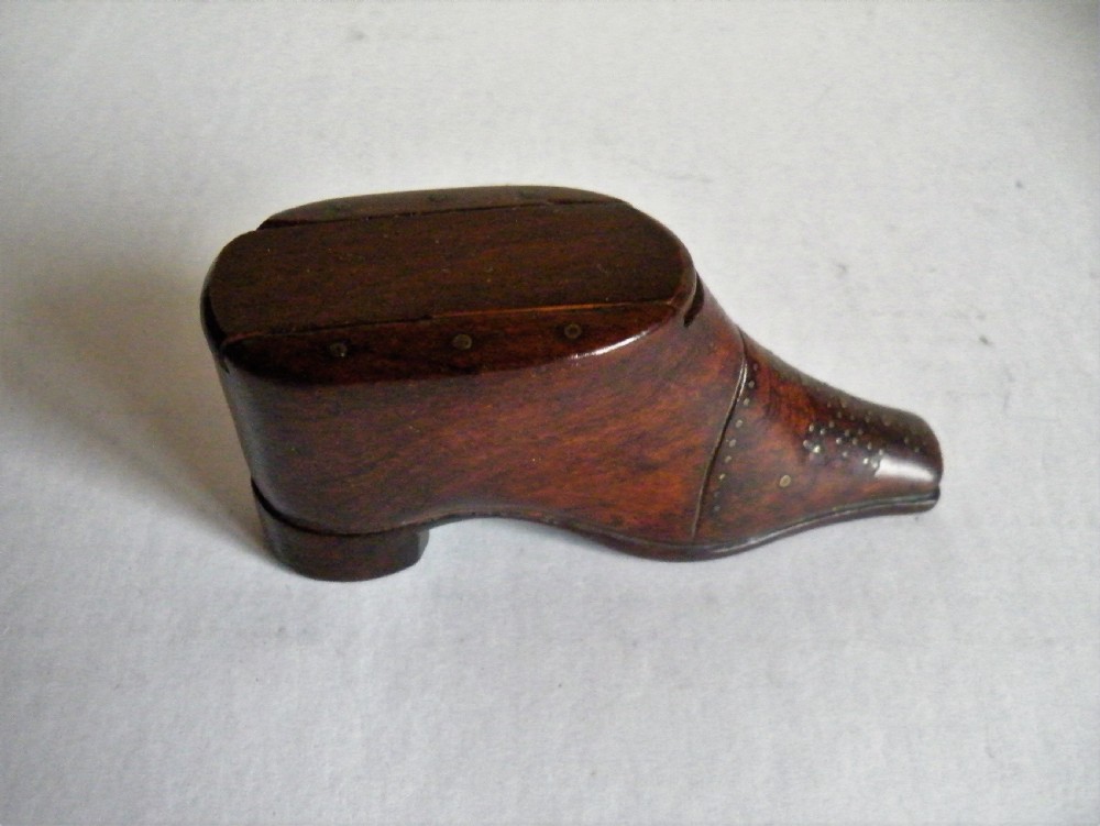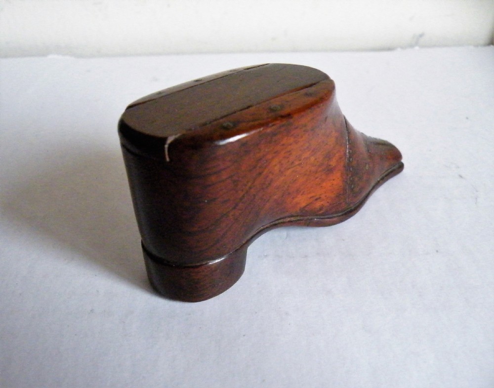 A GOOD GEORGIAN TREEN SNUFF BOOT