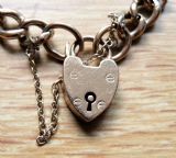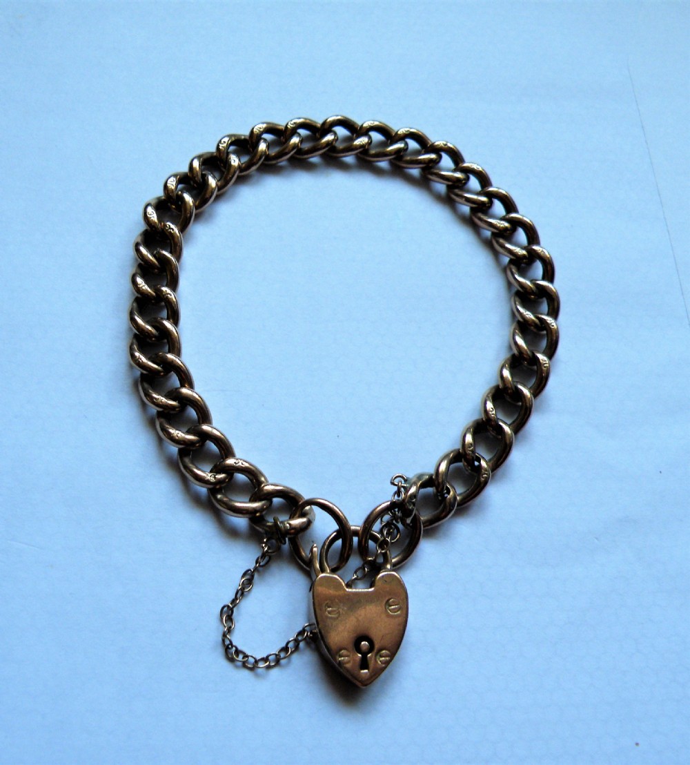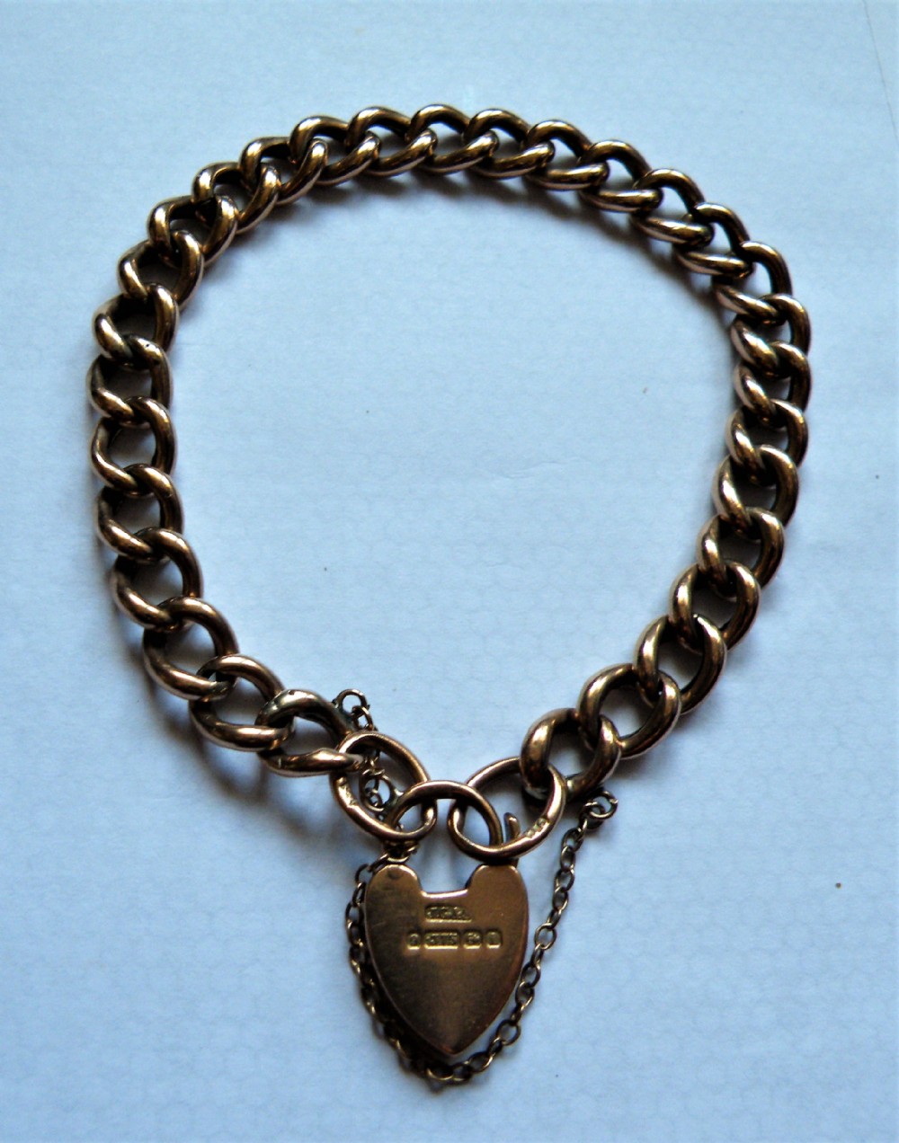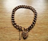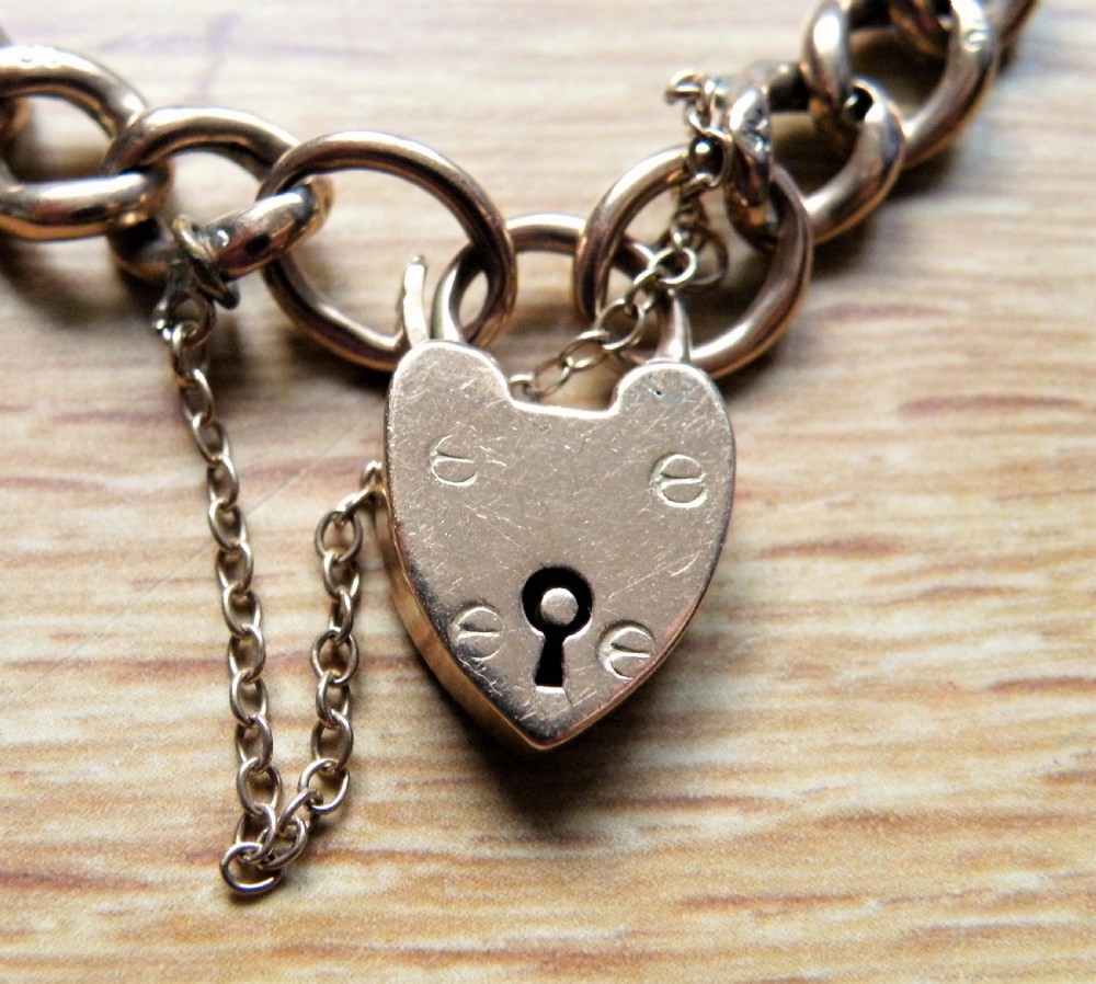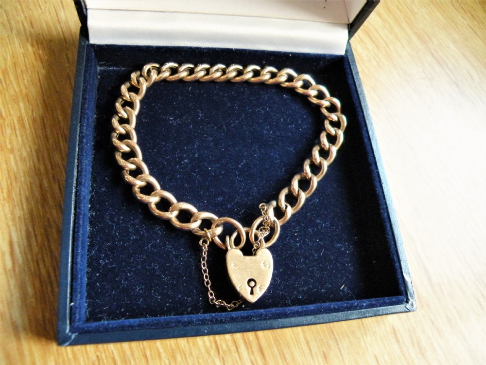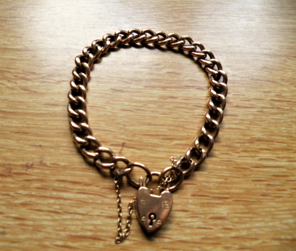 THE 9 CARAT ROSE GOLD KERB LINK BRACELET FITTED WITH A PADLOCK AND SAFETY CHAIN
