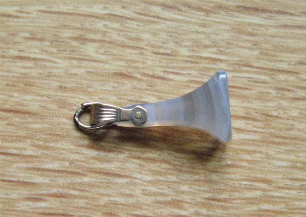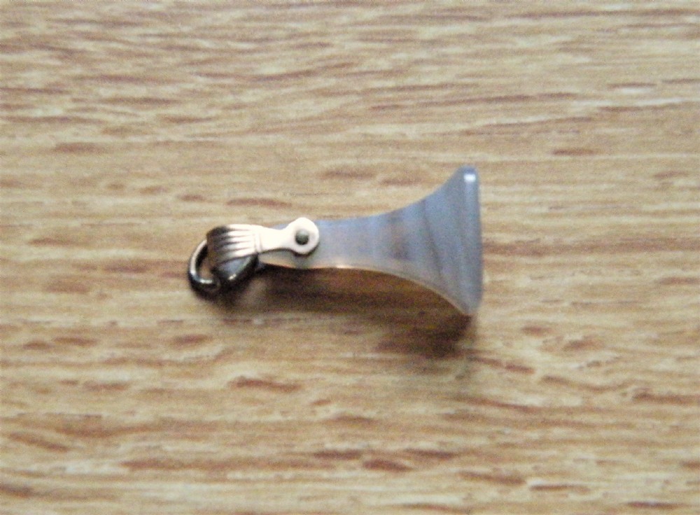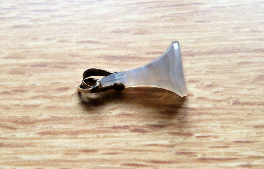 THE RECTANGULAR TAPERED AGATE HAVING A GOLD RIBBED HANGING LOOP