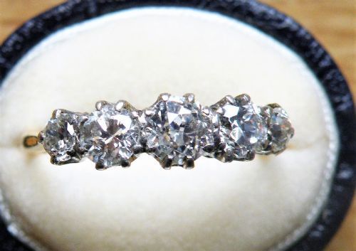 A FINE EDWARDIAN FIVE STONE DIAMOND RING