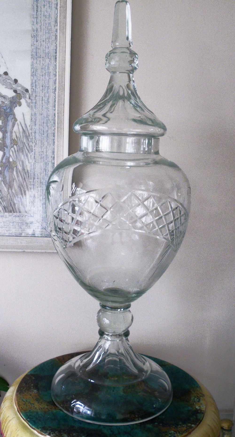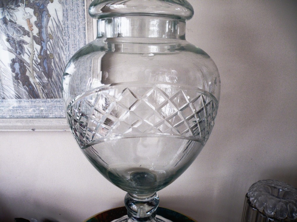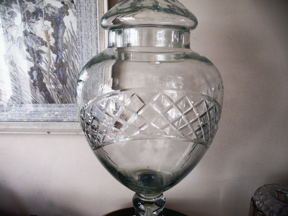 AN ENORMOUS EDWARDIAN CUT GLASS APOTHECARY SHOP WINDOW DISPLAY JAR