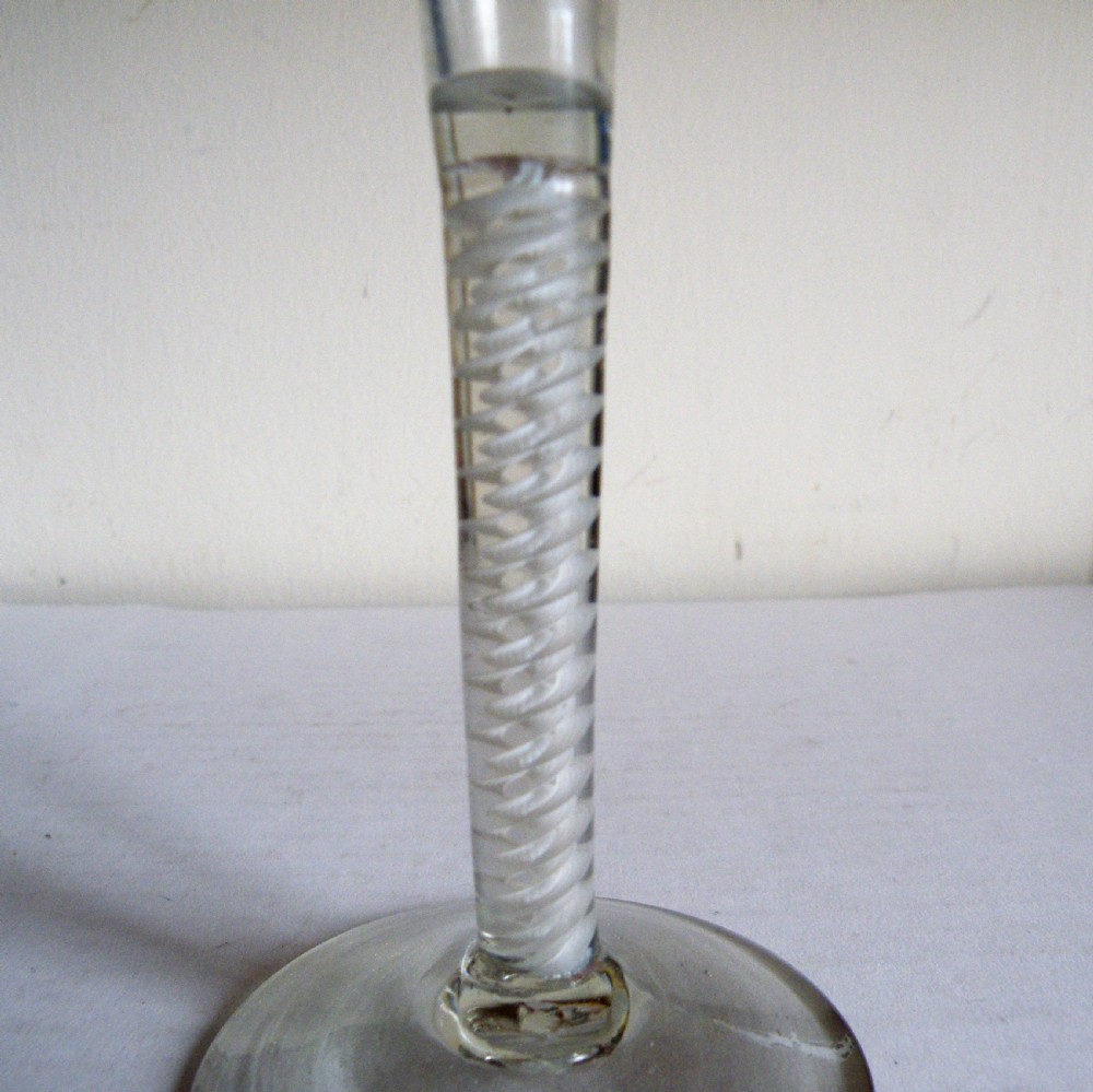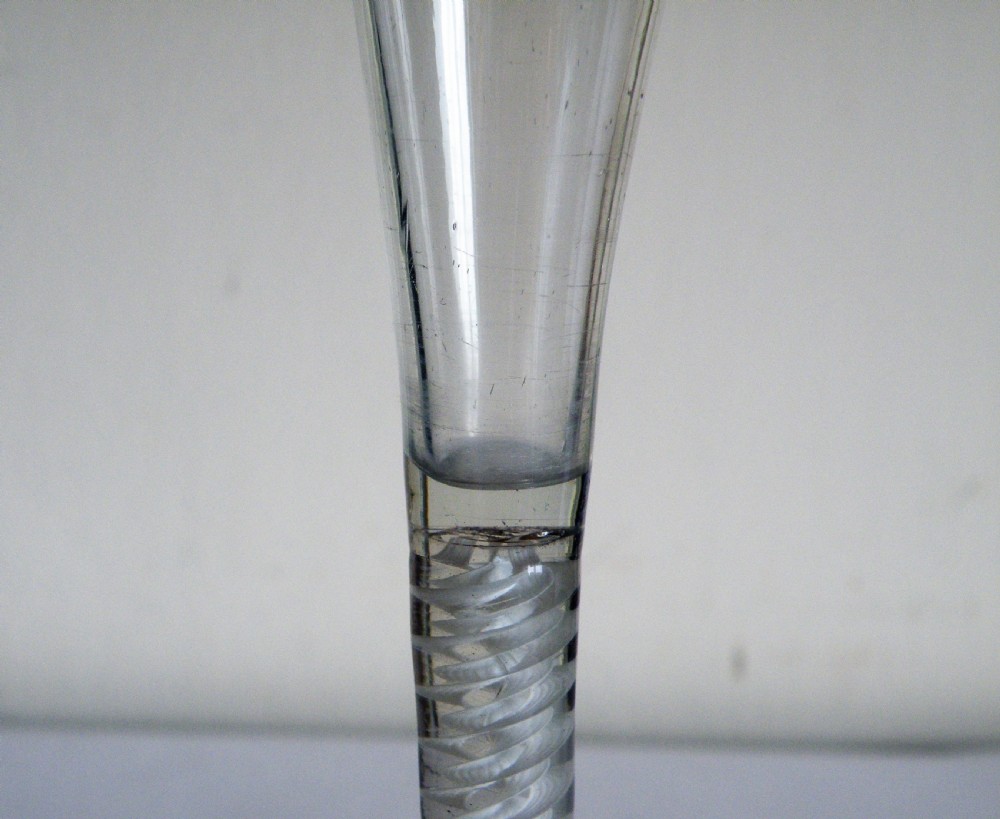 AN 18TH CENTURY OPAQUE TWIST STEM TALL WINE FLUTE CIRCA 1760