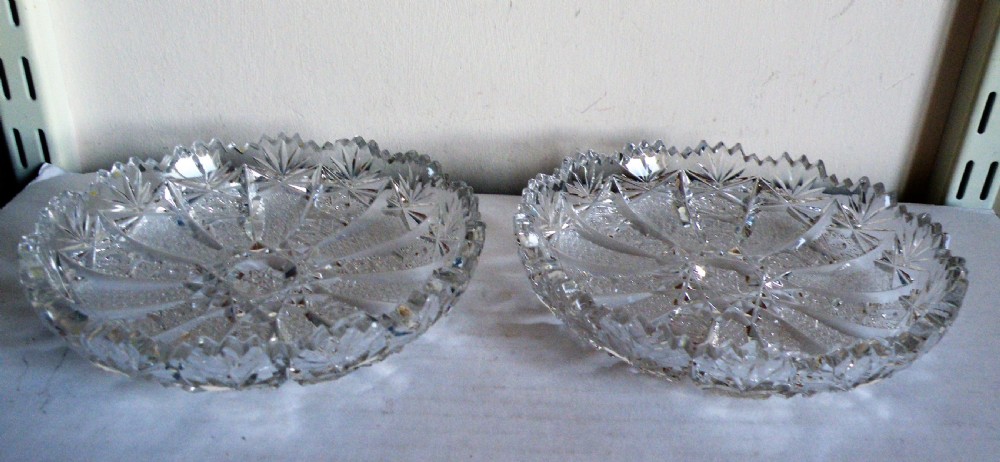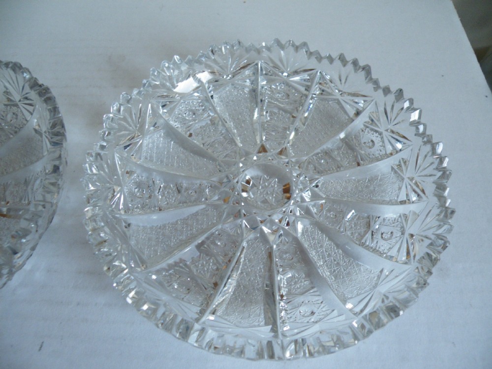 A NICE PAIR OF BRILLIANT CUT GLASS CIRCULAR DISHES