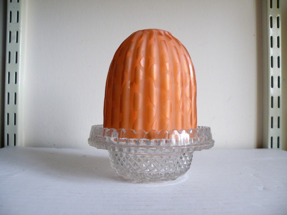 A VICTORIAN ANTIQUE QUILTED SATIN GLASS NIGHTLIGHT