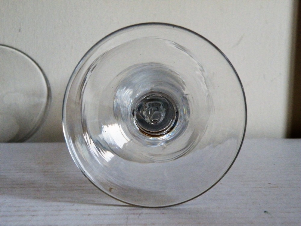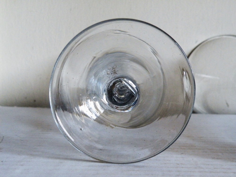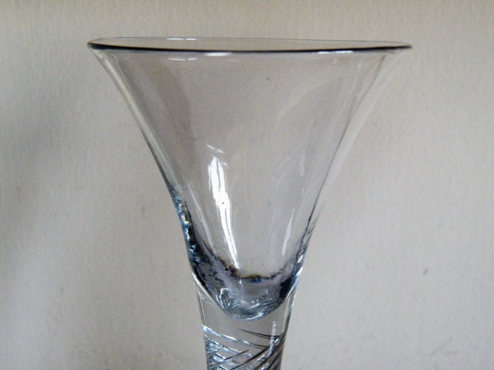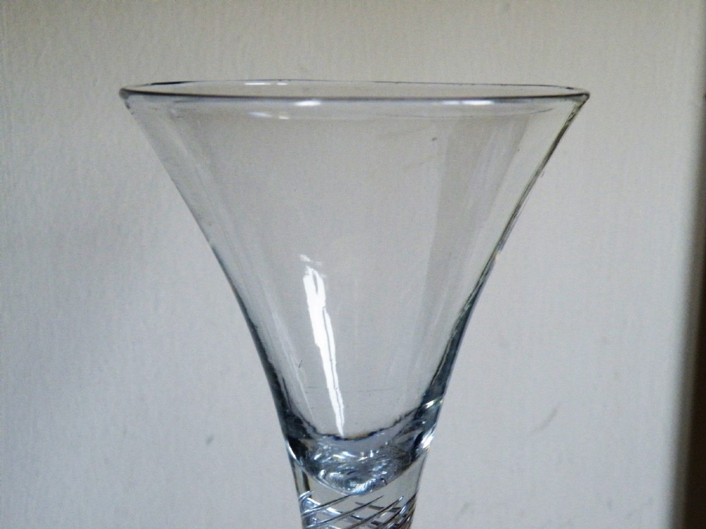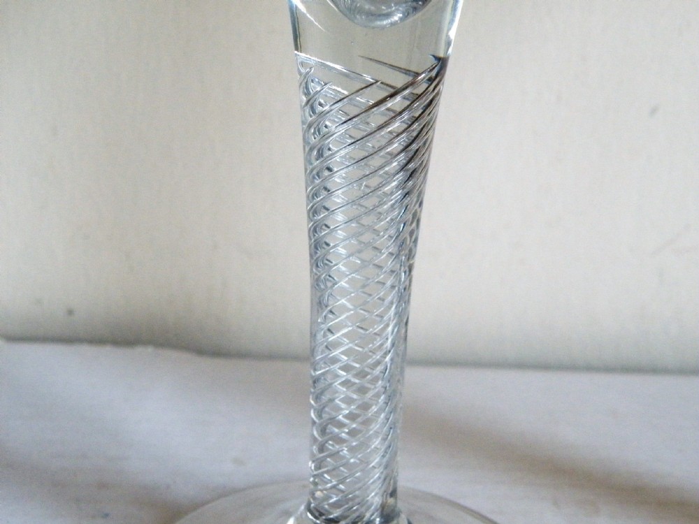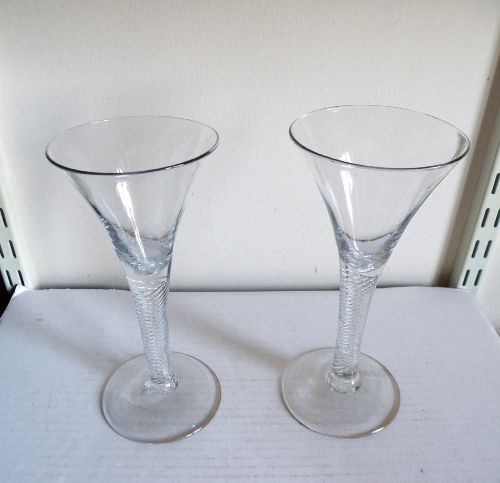 a fine large pair of mid 18th century air twist stem wine glasses circa 1745
